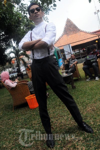 TRIA VOKALIS THE CHANGCUTERS - Mohammad Tria Ramadani alias Tria vokalis The Changcuters, di acara peluncuran singel religi pertama yang diberi judul 'Hap Tangkap', Senin (6/8/2012) di Rumah Saya, Pasar Minggu, Jakarta. (TRIBUNNEWS.COM/FX ISMANTO)