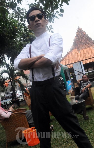 TRIA VOKALIS THE CHANGCUTERS - Mohammad Tria Ramadani alias Tria vokalis The Changcuters, di acara peluncuran singel religi pertama yang diberi judul 'Hap Tangkap', Senin (6/8/2012) di Rumah Saya, Pasar Minggu, Jakarta. (TRIBUNNEWS.COM/FX ISMANTO)