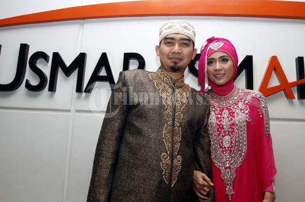 Ustad Soleh mahmud dan istrinya Aprilia Yasmin saat ditemui dalam acara konferensi pers film Ummi Aminah di Pusat Perfilman Usmar Ismail, Jakarta, Kamis (22/12/2011). Film yang diproduksi oleh Multiviosn Plus dan disutradarai oleh Aditya Gumay tersebut menceritakan tentang konflik di dalam keluarga seorang penceramah kondang. (TRIBUNNEWS/DANY PERMANA)